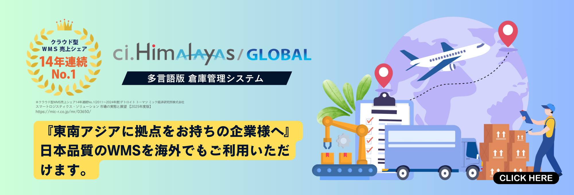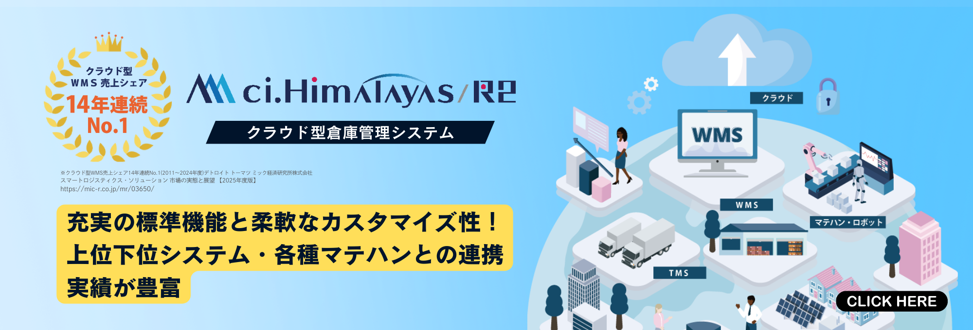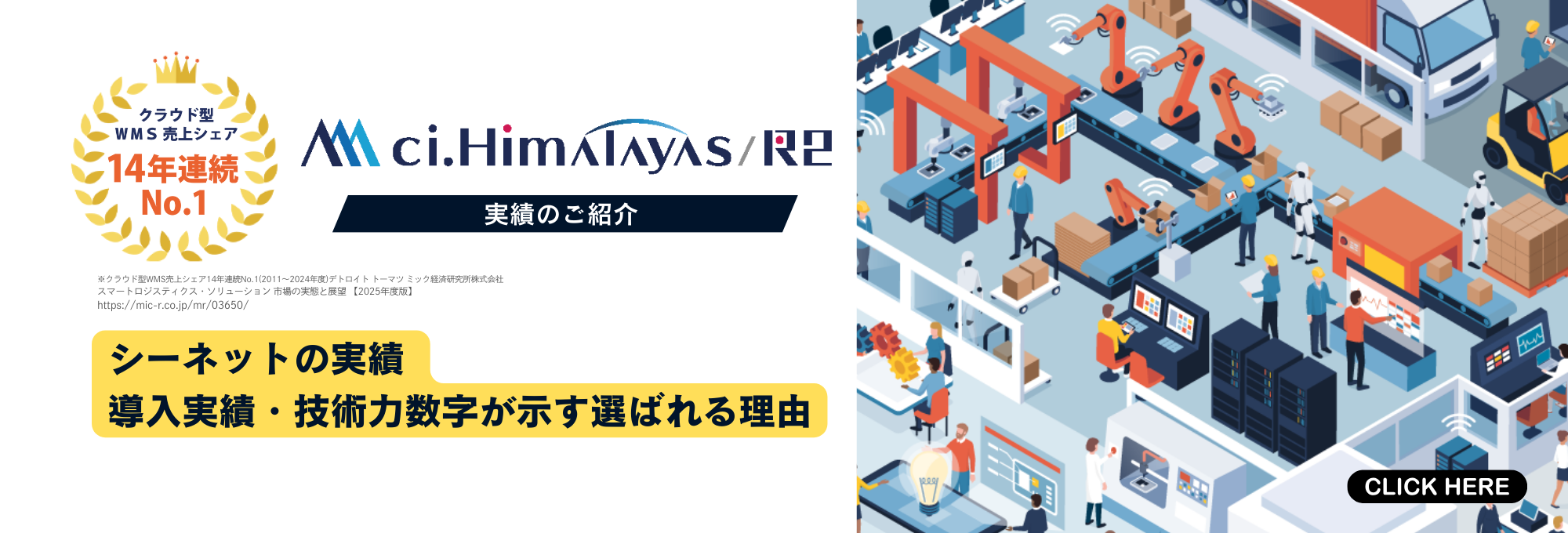 - シーネットの倉庫管理システム「ci.Himalayas(シーアイ・ヒマラヤ)」が 14年連続でクラウド型WMS売上シェアNo.1を獲得 自動化ニーズの高まりを背景に、クラウドWMS市場のトップを堅持!